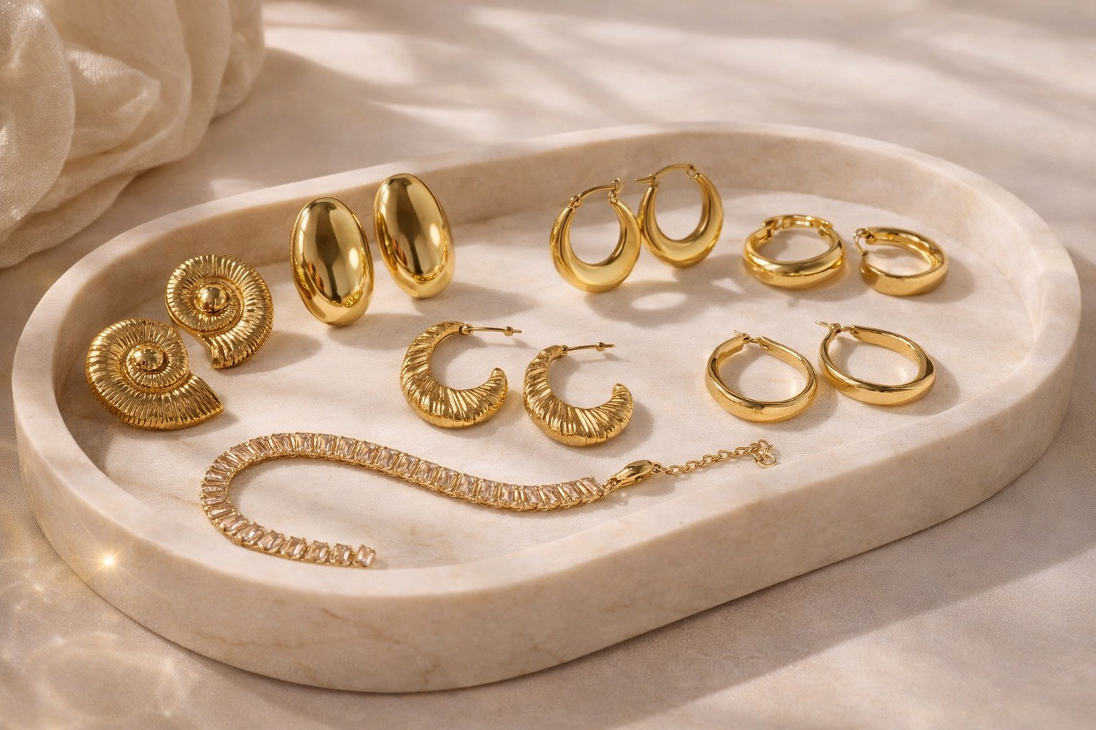 Jewellery should move with you, not restrict you. Our anti-tarnish, 18K gold-dipped pieces are designed for real life.